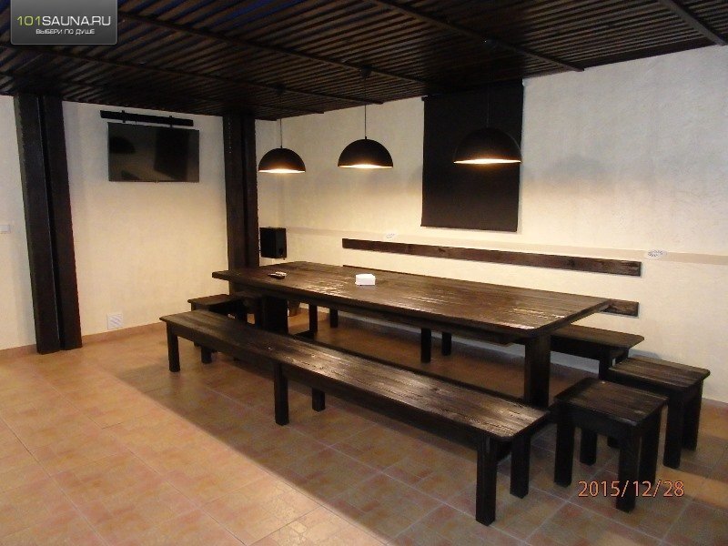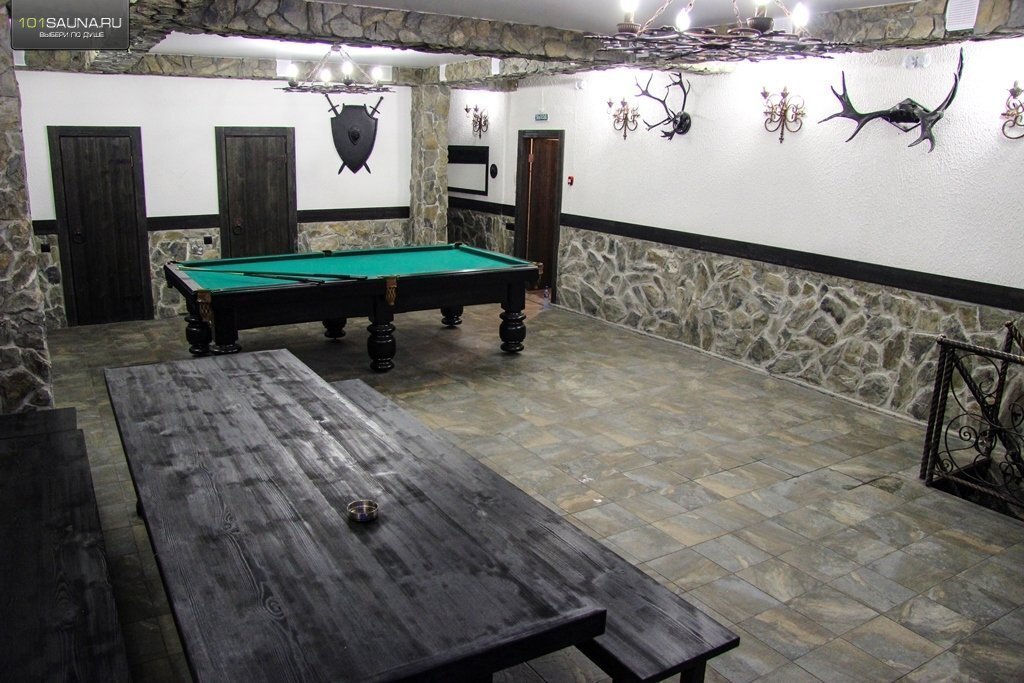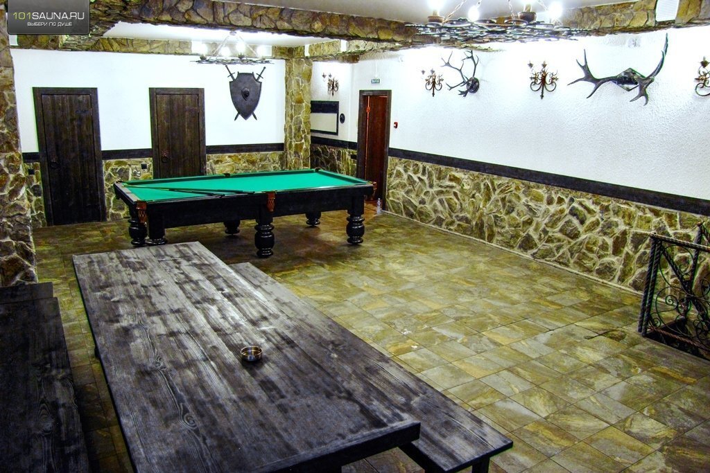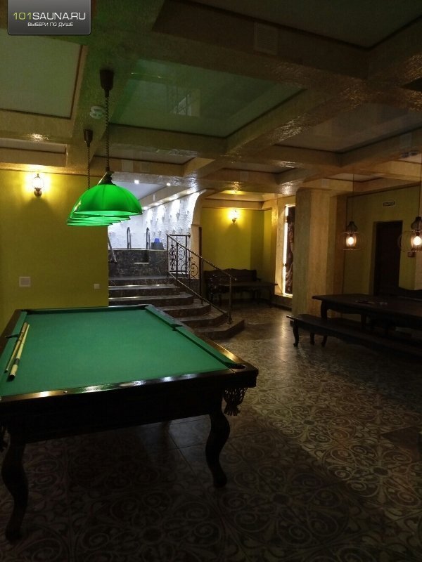 Не хочется в бассейн? Не беда! Вместо этого можно провести время в нашей комнате отдыха. Мы ставили своей целью создать здесь уютный, практичный интерьер из преимущественно натуральных, безопасных материалов, подобрать мебель, которая будет в равной степени удобной и приятной глазу. Надеемся, что вы его оцените! Для поддержания атмосферы отдыха мы можем предложить вам бильярд. Также у нас имеется бар, а при необходимости вы можете прийти и со своей едой - мы не возражаем! Главное помните, что плотная трапеза незадолго перед посещением парной - это не самая удачная идея, по мнению терапевтов. А вот после парной она совсем не повредит!